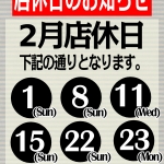 2月1日、8日、11日、15日、22日、23日は店舗休業日とさせていただきます。